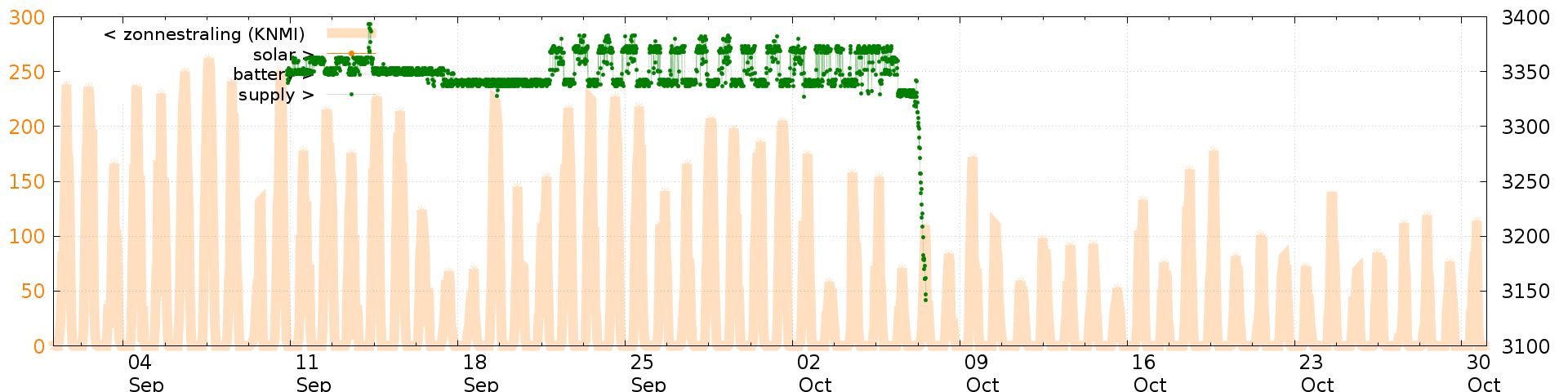 Battery and solar voltage measurements of the last 2 months: