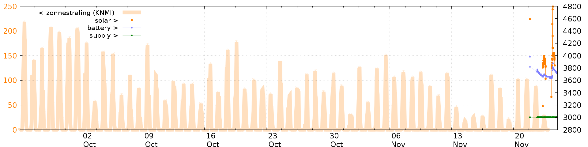Battery and solar voltage measurements of the last 2 months: