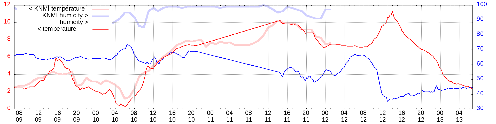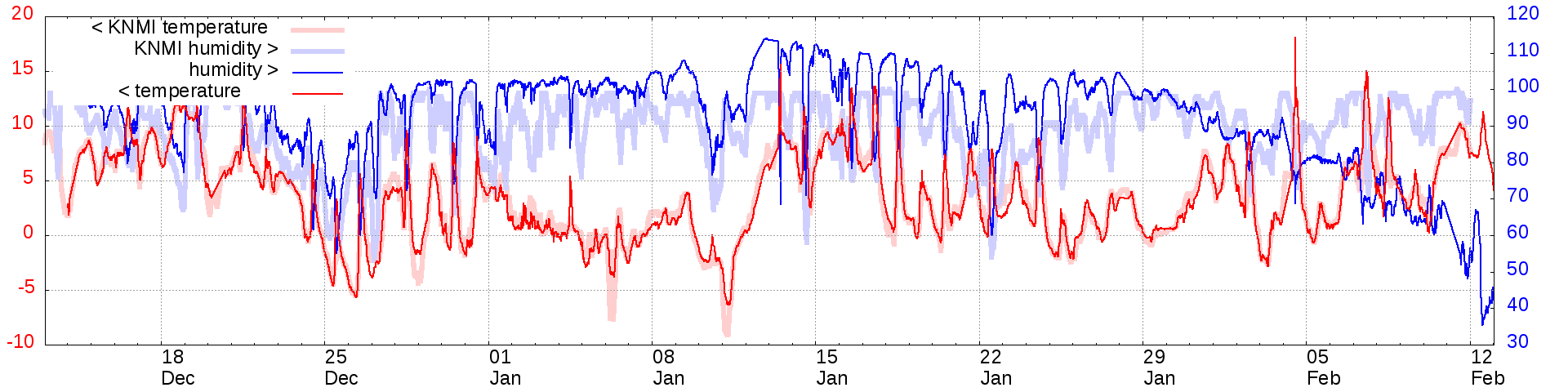Temperature and humidity measurements of the last 2 weeks: