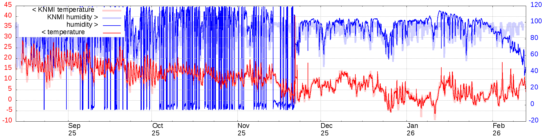 Temperature and humidity measurements of the last 6 months: