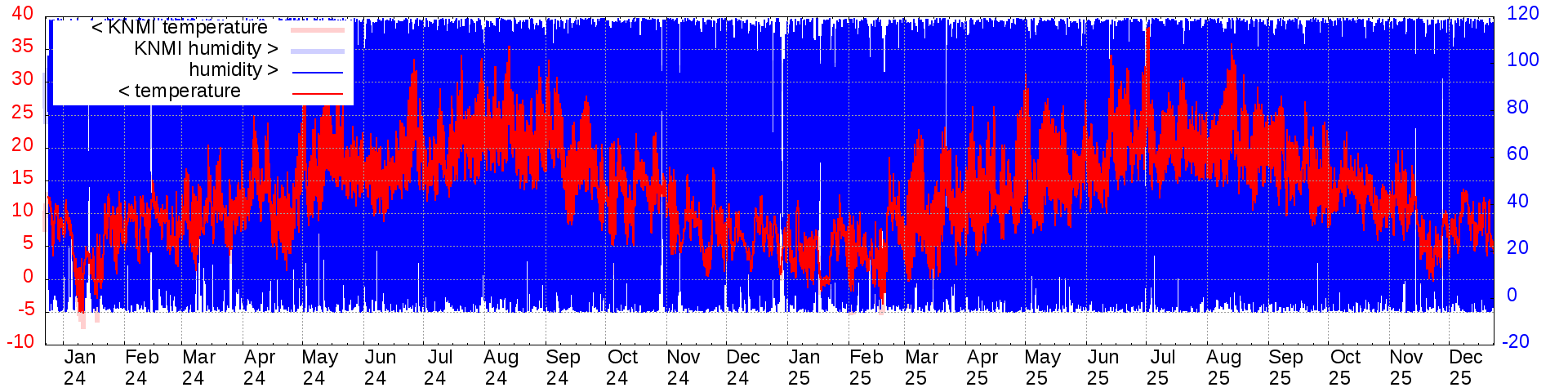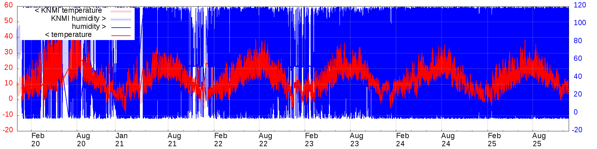 Temperature and humidity measurements of the last 6 months: