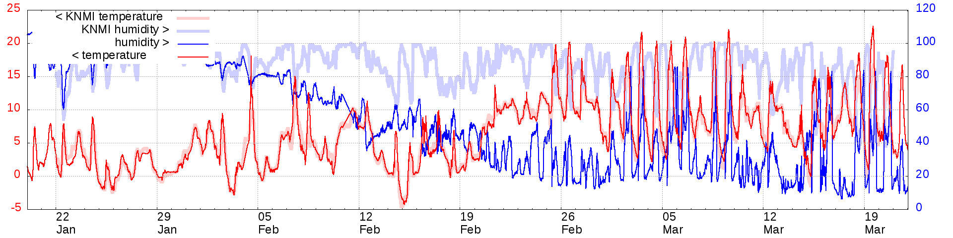 Temperature and humidity measurements of the last 2 months: