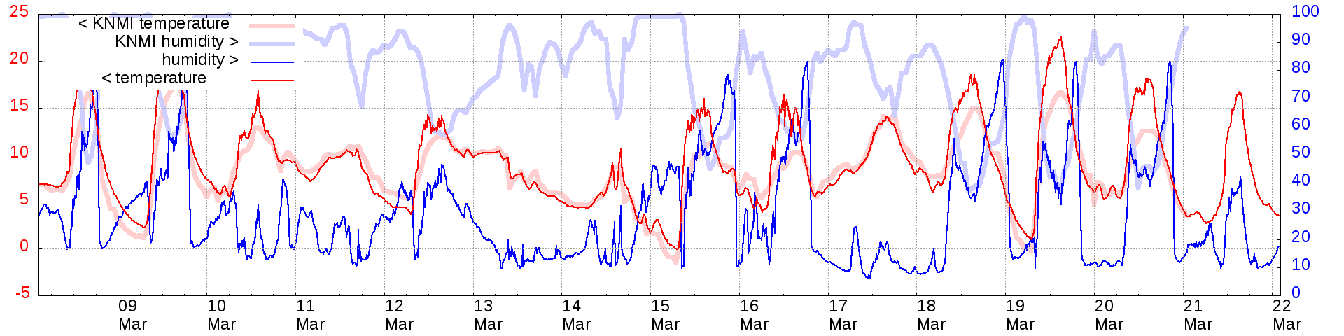 Temperature and humidity measurements of the last 2 weeks: