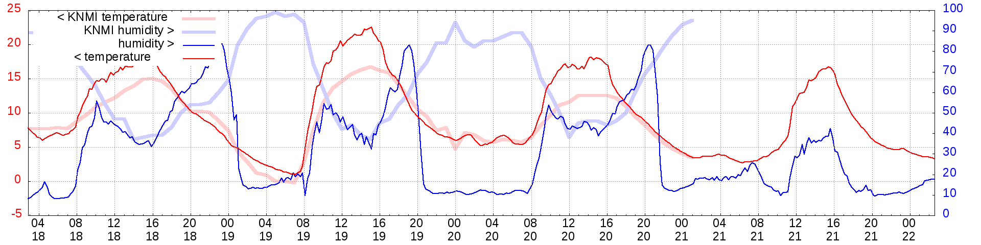 Temperature and humidity measurements of the last 4 days: